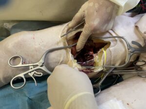This contains the femur, tibia and skeleton of the foot for a mid-thigh GSW with arterial injury for control and shunting, an option for femoral fracture and fasciotomies.